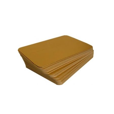 Pack de 500 bandejas aluminizadas (metal free) rectangular con bordes curvos. De color dorado por un lado y color negro por el otro.